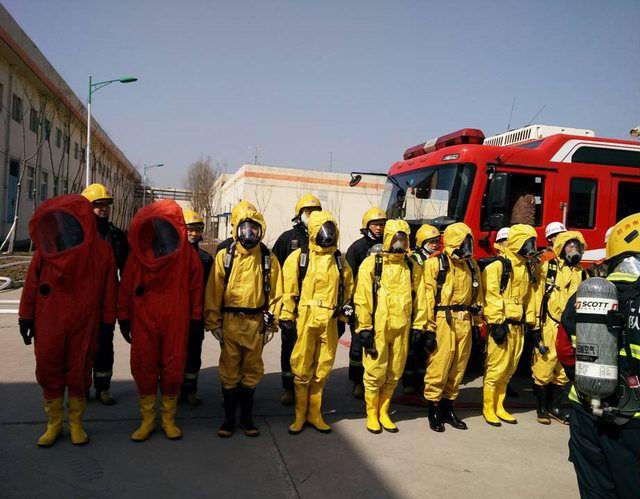 洛陽市消防支隊王榮范參謀長、西工區(qū)消防大隊劉學(xué)康大隊長及洛陽正大總裁辦喬光斌總經(jīng)理、食品事業(yè)部杜光輝副總經(jīng)理一行在演練前到達(dá)演練場地進行安排部署,成立了消防演練現(xiàn)場指揮部,由洛陽市消防支隊王榮范參謀長任指揮長。演練假設(shè)正大食品有限公司制冷機房因設(shè)備發(fā)生故障,液氨罐發(fā)生泄漏,1名操作人員受困,現(xiàn)場人員立即向公司領(lǐng)導(dǎo)匯報并撥打119尋求支援。119指揮中心在接到報警后,由洛陽市消防支隊協(xié)調(diào),迅速調(diào)集澗西消防大隊下屬谷水中隊,西工區(qū)消防大隊下屬車站中隊、紅山中隊迅速趕赴現(xiàn)場,與此同時正大食品有限公司迅速啟動單位應(yīng)急預(yù)案,組織員工疏散。十五分鐘后,紅山消防中隊6臺消防車、2臺救護車到達(dá)現(xiàn)場,消防戰(zhàn)士著防化服立即進入現(xiàn)場,對氨中毒人員進行搶救,對氨泄漏部位進行應(yīng)急處置。二十分鐘后谷水中隊、車站中隊6臺消防車達(dá)到現(xiàn)場支援, 50余名消防員展開救援戰(zhàn)斗,用消防水槍噴水中和泄漏的氨氣,降低空氣中氨的濃度。經(jīng)過近一個小時的搶維修,氨泄漏得到控制,演練指揮中心宣布本次演練***結(jié)束。