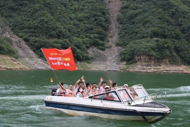 8月17日下午13時,團(tuán)建隊(duì)伍前往云臺山紅石峽風(fēng)景區(qū),各團(tuán)隊(duì)你追我趕,團(tuán)隊(duì)成員相扶相攜。大家沿著既定的路線,個個精神抖擻,臉上洋溢著快樂的笑容,一面欣賞優(yōu)美風(fēng)光,一面在徒步中留下一片歡聲笑語。下午15時,所有戰(zhàn)隊(duì)順利完成了徒步挑戰(zhàn),成功抵達(dá)終點(diǎn)站。即使汗水浸濕了每個人的衣衫,但炎熱和疲憊沒有阻擋大家的前進(jìn),也沒能讓隊(duì)伍行進(jìn)的速度有一絲一毫的減緩。團(tuán)隊(duì)的信念激勵并支撐著大家不畏艱難地一直走下去,徒步如此,集團(tuán)發(fā)展的腳步亦是如此。隨后,團(tuán)建隊(duì)伍帶著隊(duì)旗登上快艇,穿梭于山水之間,正如生品銷售團(tuán)隊(duì)披荊斬棘、尋光而行,乘風(fēng)破浪、追夢奔跑。至此,本次團(tuán)建活動也***落幕。