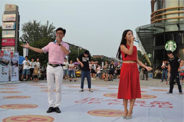 活動(dòng)時(shí)長大約30分鐘,首先快閃人員在王府井南昌路店門口廣場中央集合,穿戴著簡單大方、整齊利索的衣物四處游走在人群中。時(shí)間一到,音樂響起,歌手慢慢走近中央,一首振奮人心的“我和你”拉開整個(gè)活動(dòng)的序幕,瞬間引起了在場所有人群的關(guān)注。緊接著舞蹈演員閃亮上場,展開了一場激情澎湃的機(jī)械舞,帶動(dòng)現(xiàn)場觀眾情不自禁參與到表演中來,此時(shí)人流迅速聚攏,引起圍觀。然后正大食品有限公司員工身著公司服裝,唱著正大集團(tuán)《愛是正大無私的奉獻(xiàn)》一起出現(xiàn)在廣場中央,隨后幾段歌舞串燒將現(xiàn)場氣氛推向***,在觀眾意猶未盡之時(shí)迅速閃開在人群之中?;顒?dòng)過程中穿插進(jìn)行了分發(fā)公司宣傳材料、食品安全知識(shí)宣傳單,現(xiàn)場觀眾品嘗了洛陽正大豬肉調(diào)理品、醬鹵產(chǎn)品及集團(tuán)現(xiàn)代食品。