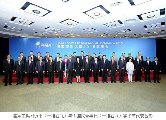3月26-29日,博鰲亞洲論壇2015年年會在海南省博鰲舉行,本屆年會主題為“亞洲新未來:邁向命運共同體”。3月28日,國家主席習(xí)近平出席了年會開幕式,發(fā)表了題為《邁向命運共同體 開創(chuàng)亞洲新未來》的主旨演講,并與正大集團謝國民董事長等出席博鰲亞洲論壇2015年年會的華商代表合影留念。